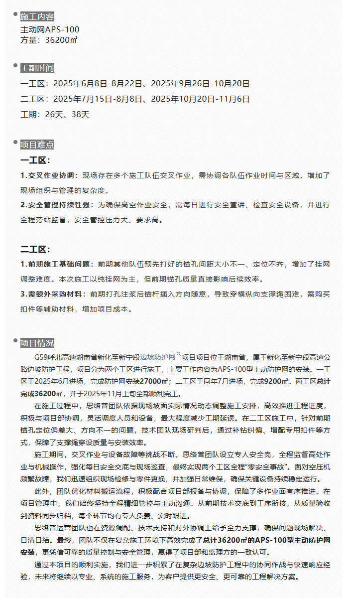 G59呼北高速湖南省新化至新宁段边坡防护网项目